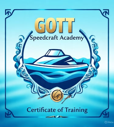 Akademi kami akan menyediakan dan memberi sijil kepada pemilik baru GOTT Speedcraft untuk mengendalikan kenderaan air dengan mahir bagi tujuan keselamatan.